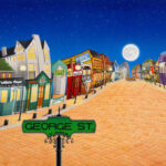 The original and unique artwork of the never before painted George Street of St. John’s, Newfoundland, looking west down the street.