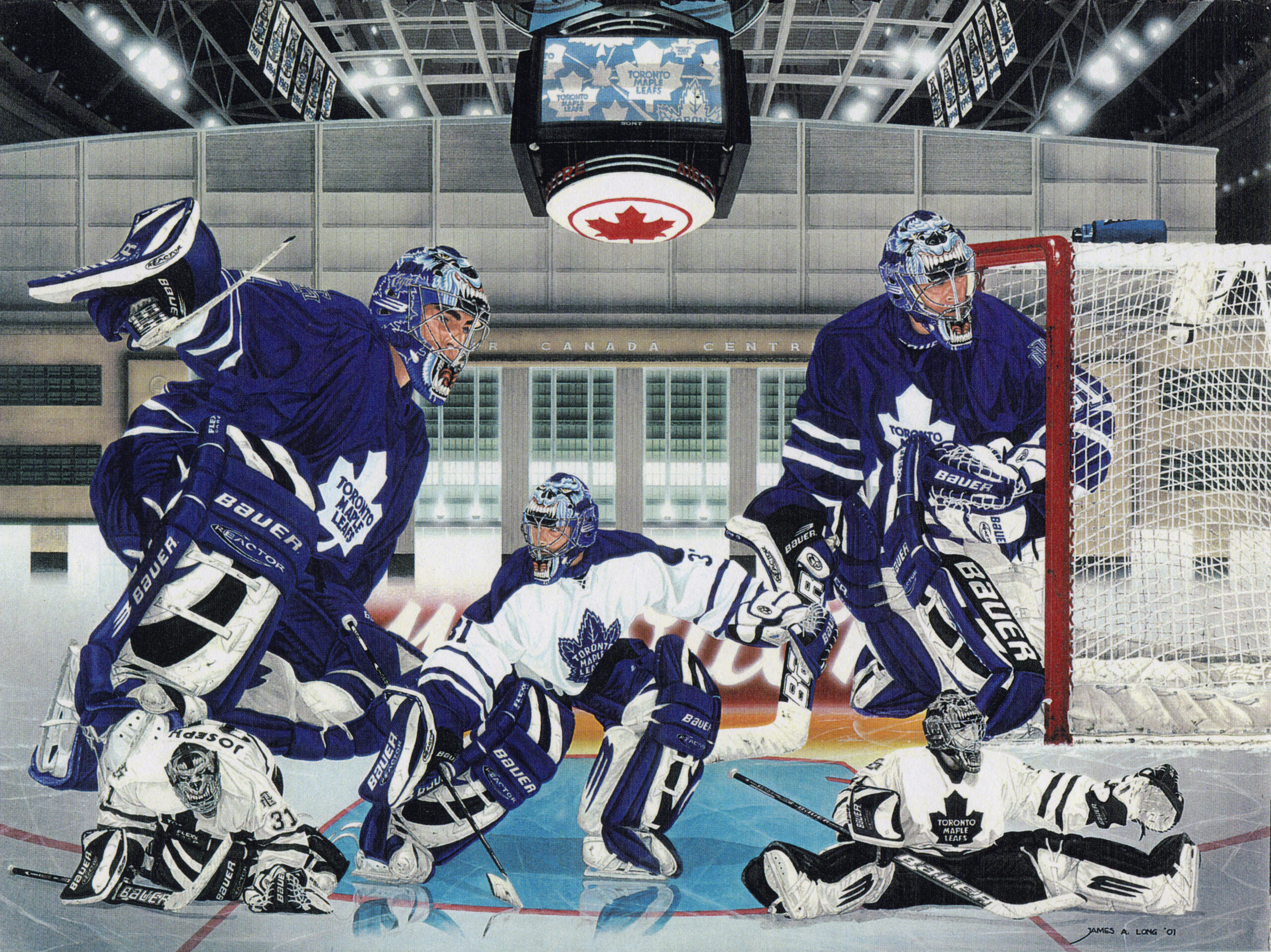 This piece celebrates both CURTIS JOSEPH and the moving of the Toronto Maple Leafs from the Maple Leaf Gardens to the Air Canada Centre.