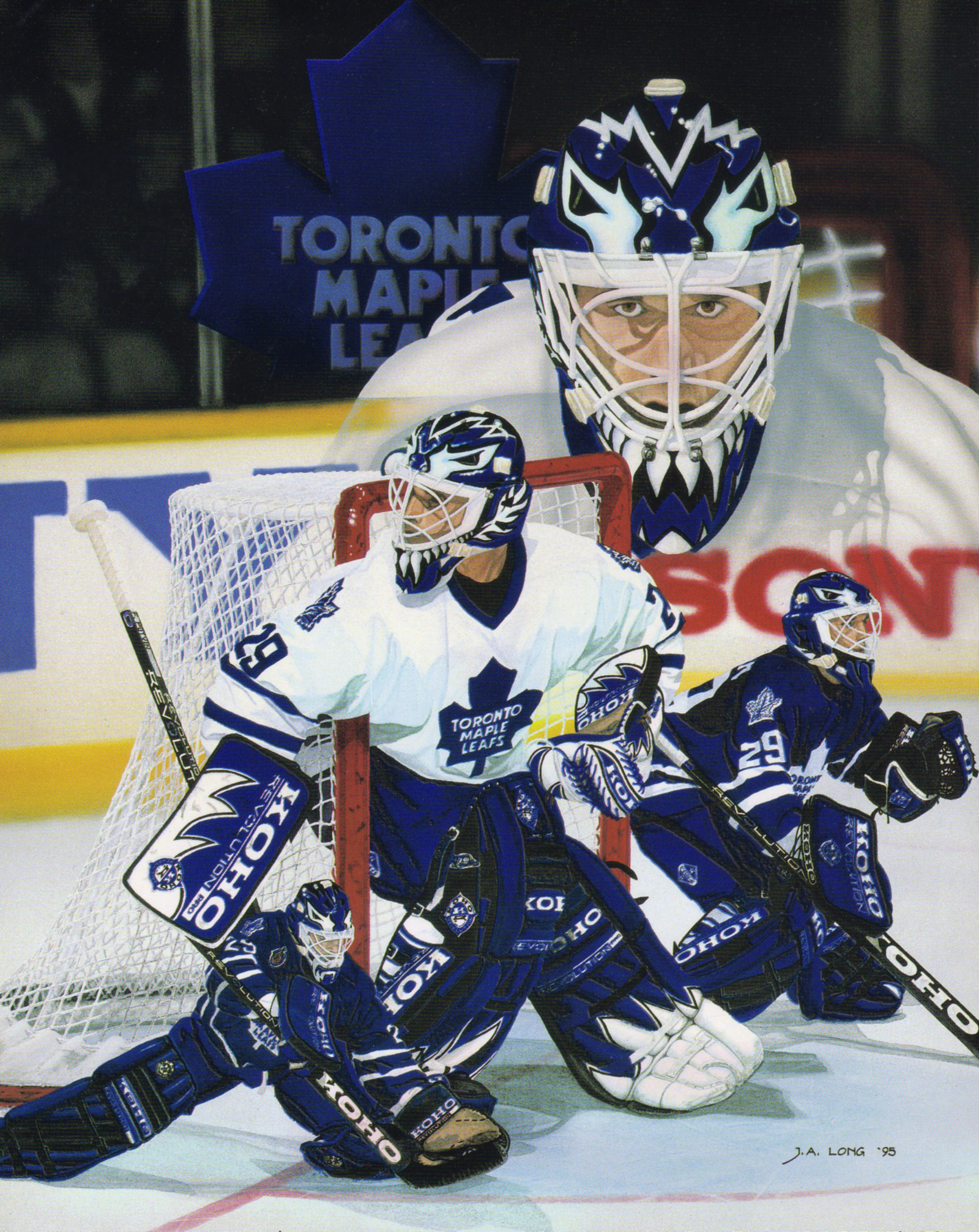 This piece celebrates both CURTIS JOSEPH and the moving of the Toronto Maple Leafs from the Maple Leaf Gardens to the Air Canada Centre.
