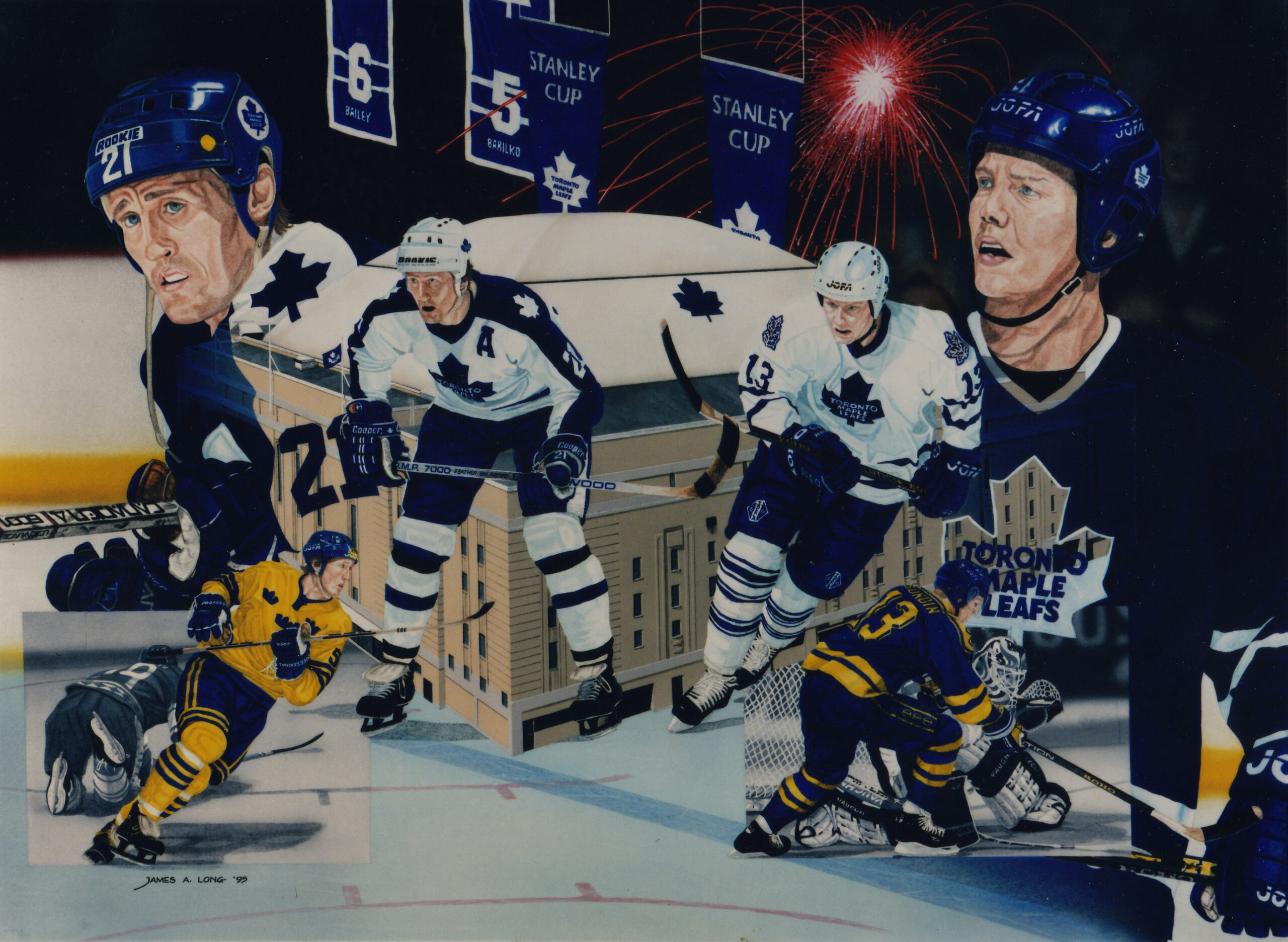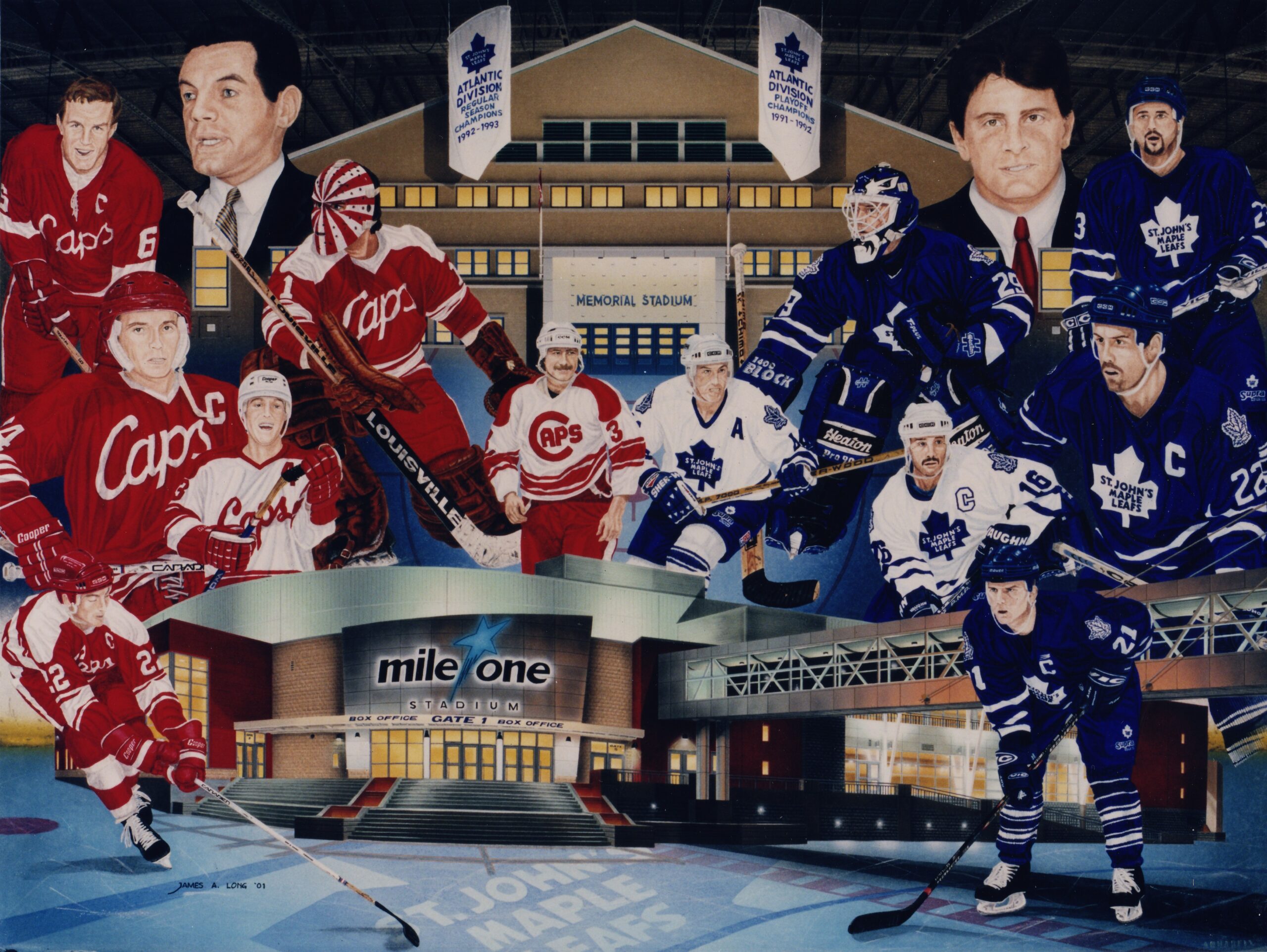 Original artwork commissioned by the ST. JOHN’S MAPLE LEAFS as a commemorative piece featuring the St. John’s Maple Leafs and the St. John’s Capitals.