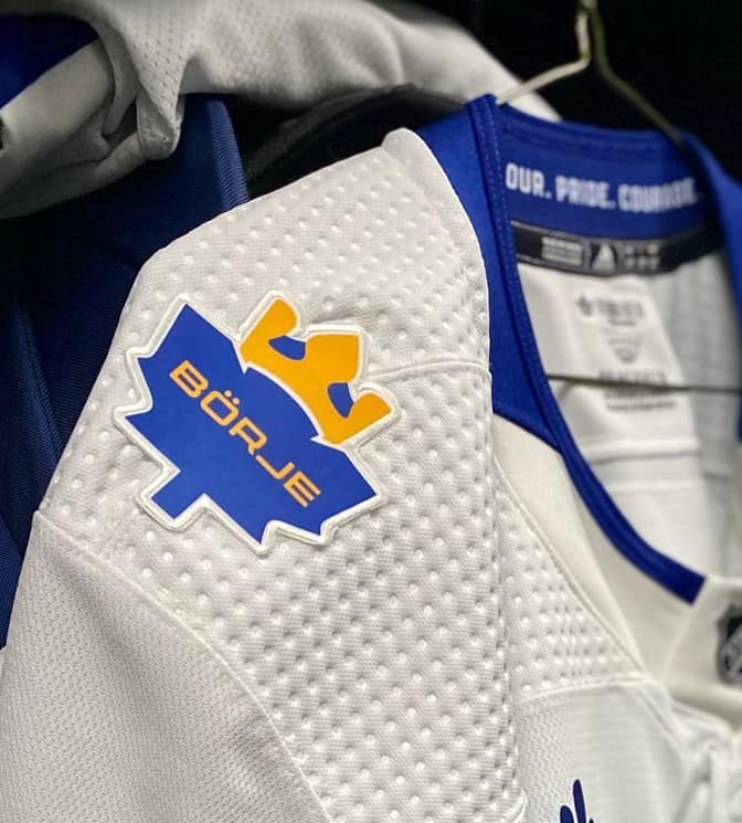 Tribute shoulder patch worn on Leaf’s jerseys to honour ‘the King’, Borje Salming.