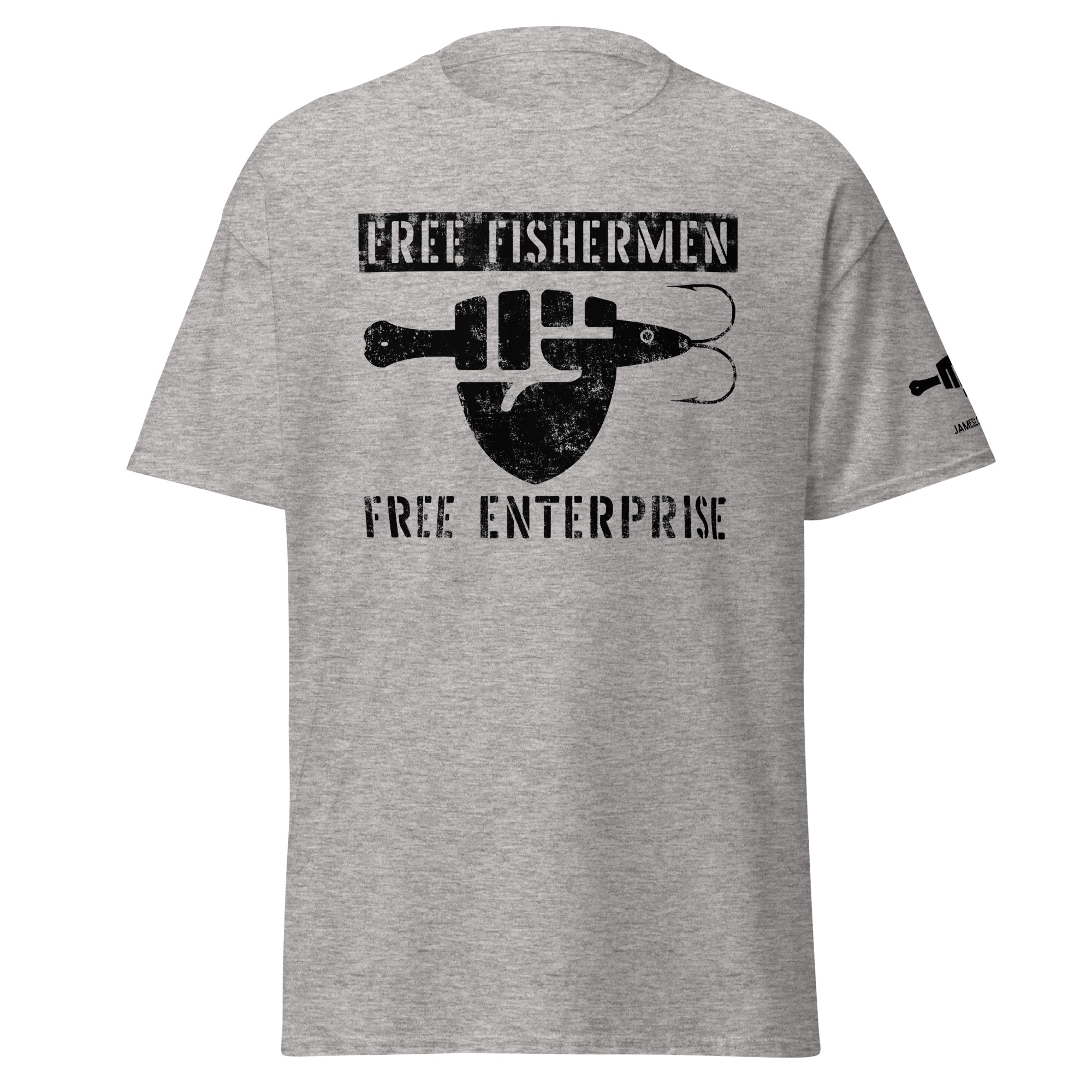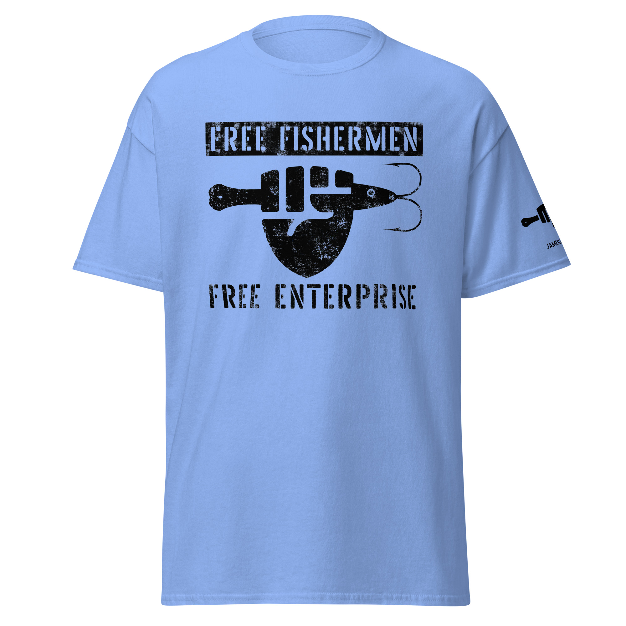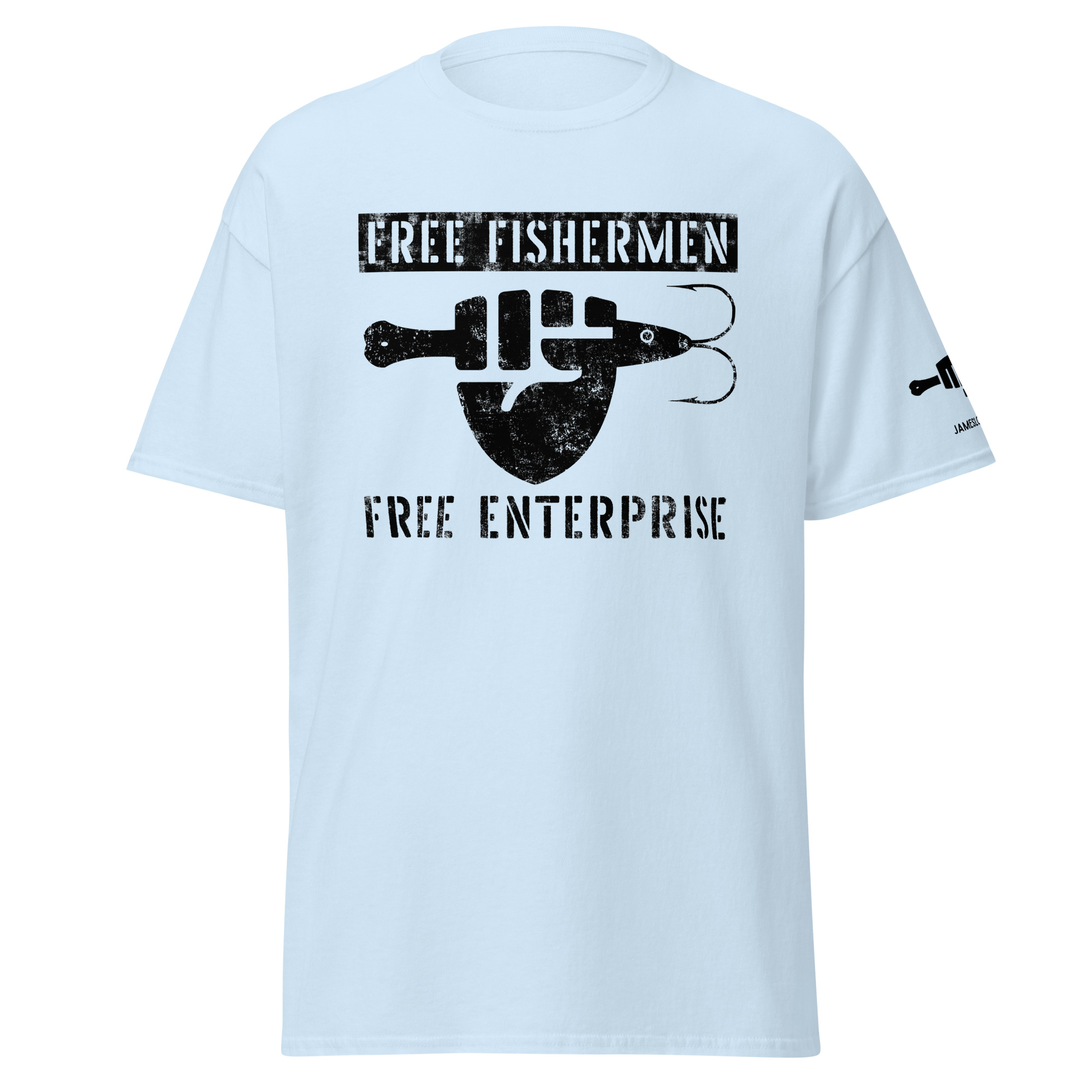 FIST & JIGGER: FREE FISHERMEN FREE ENTERPRISE (Black Distressed Logo) Unisex classic tee
