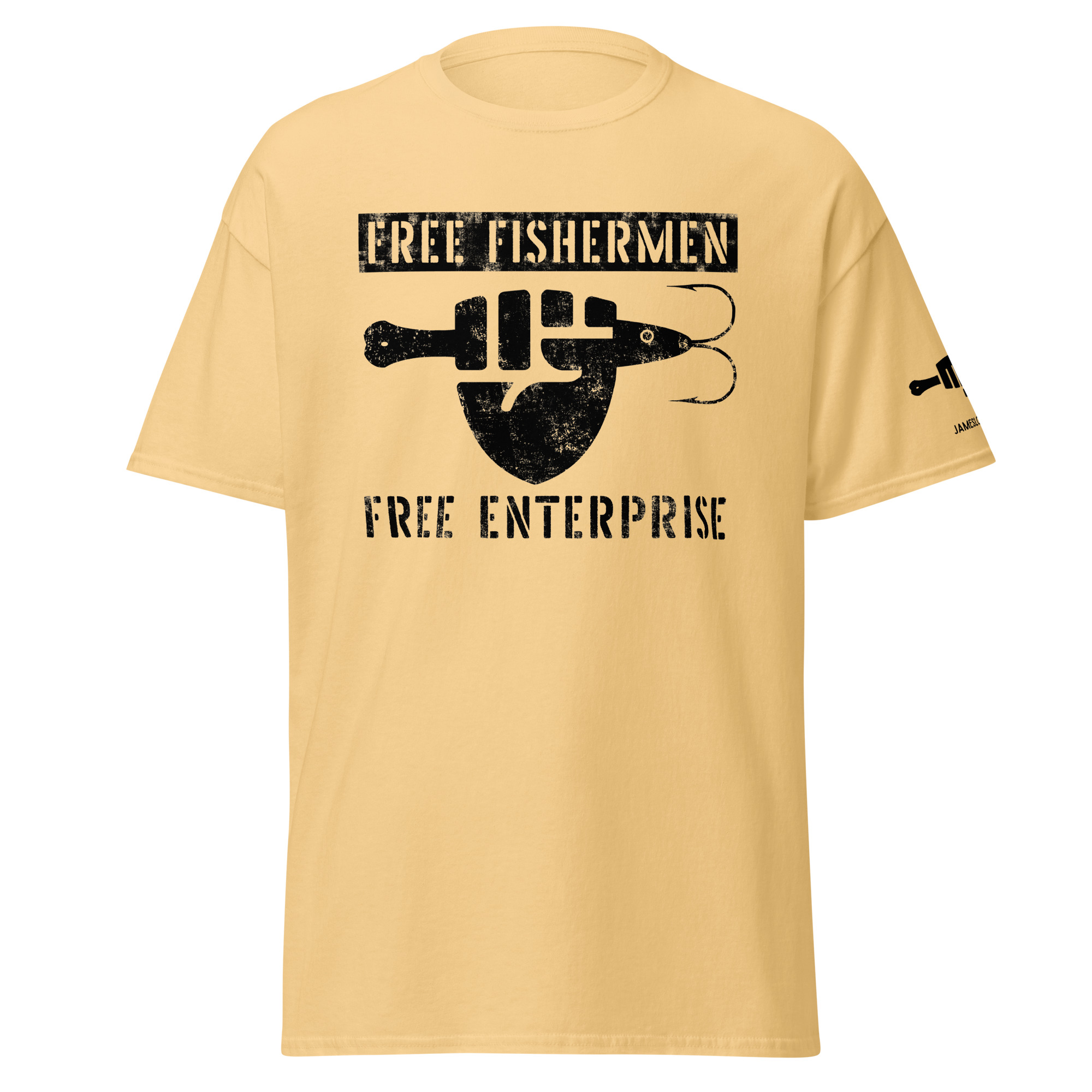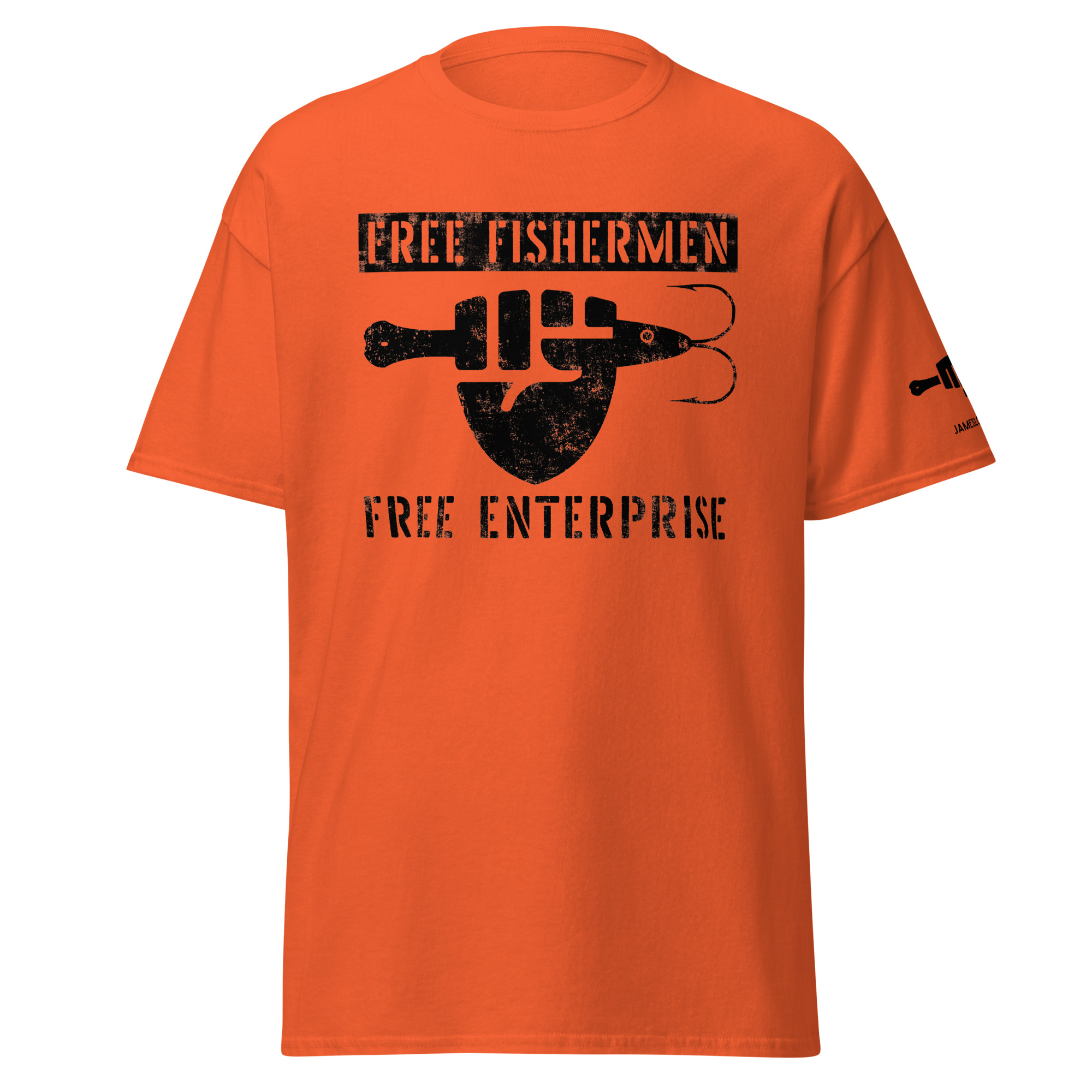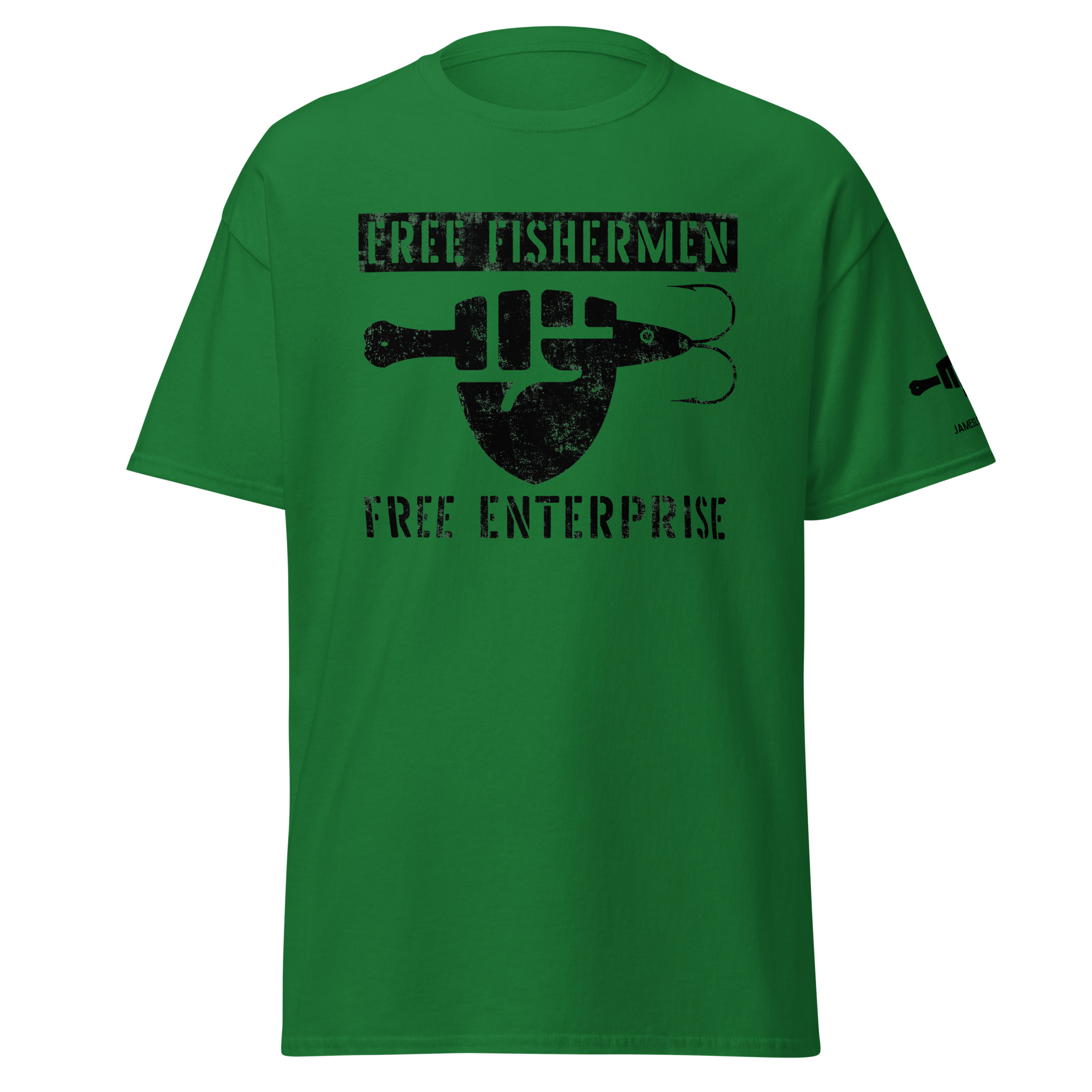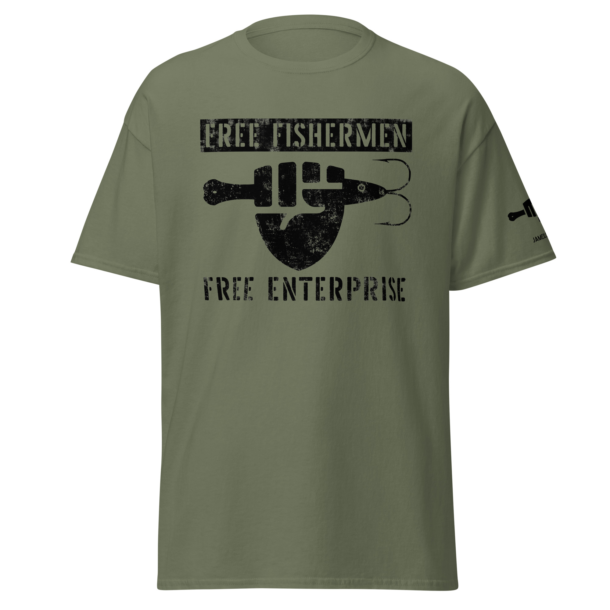 FIST & JIGGER: FREE FISHERMEN FREE ENTERPRISE (Black Distressed Logo) Unisex classic tee