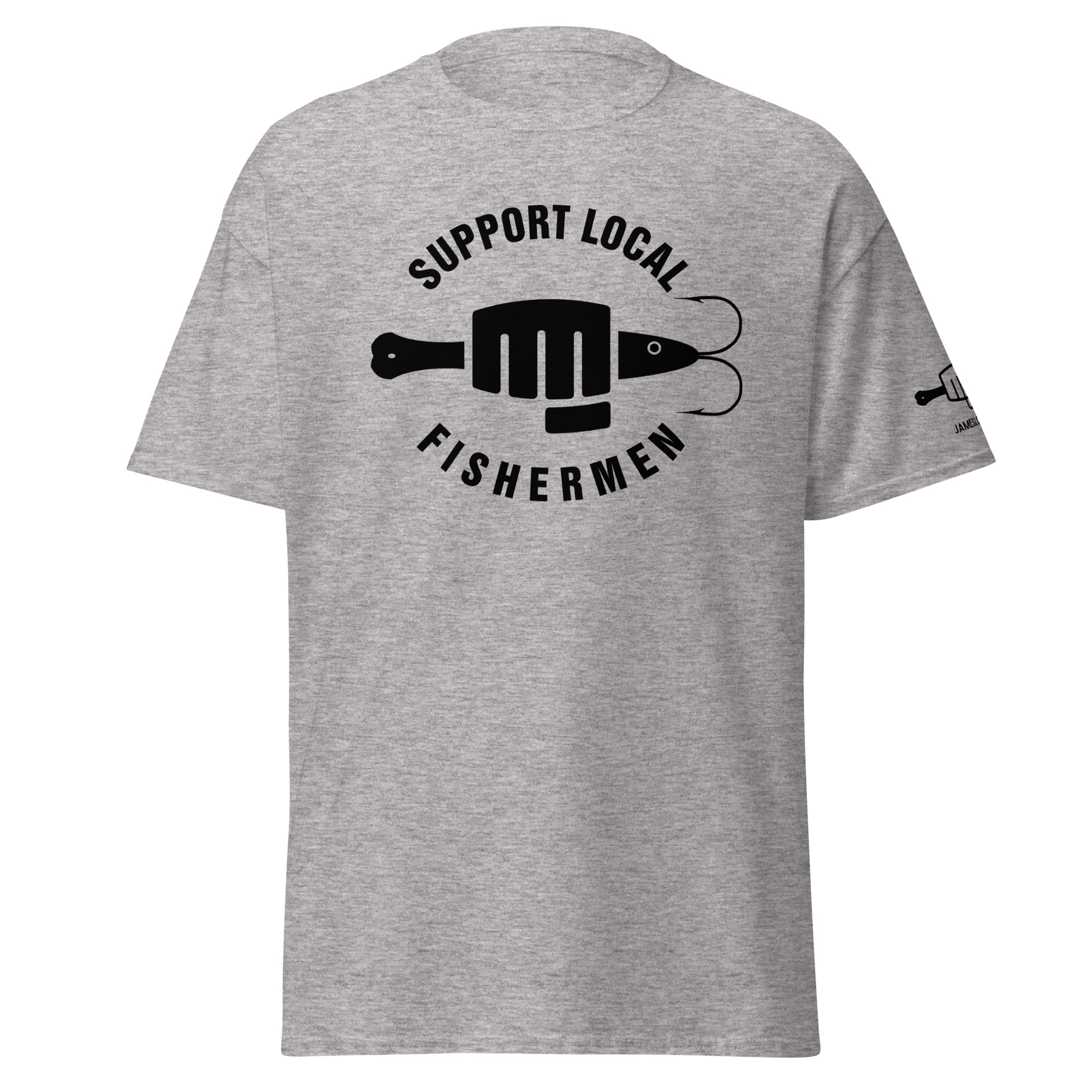 FIST PUNCH AND JIGGER: SUPPORT LOCAL FISHERMEN STYLIZED (Black Logo) Unisex classic tee