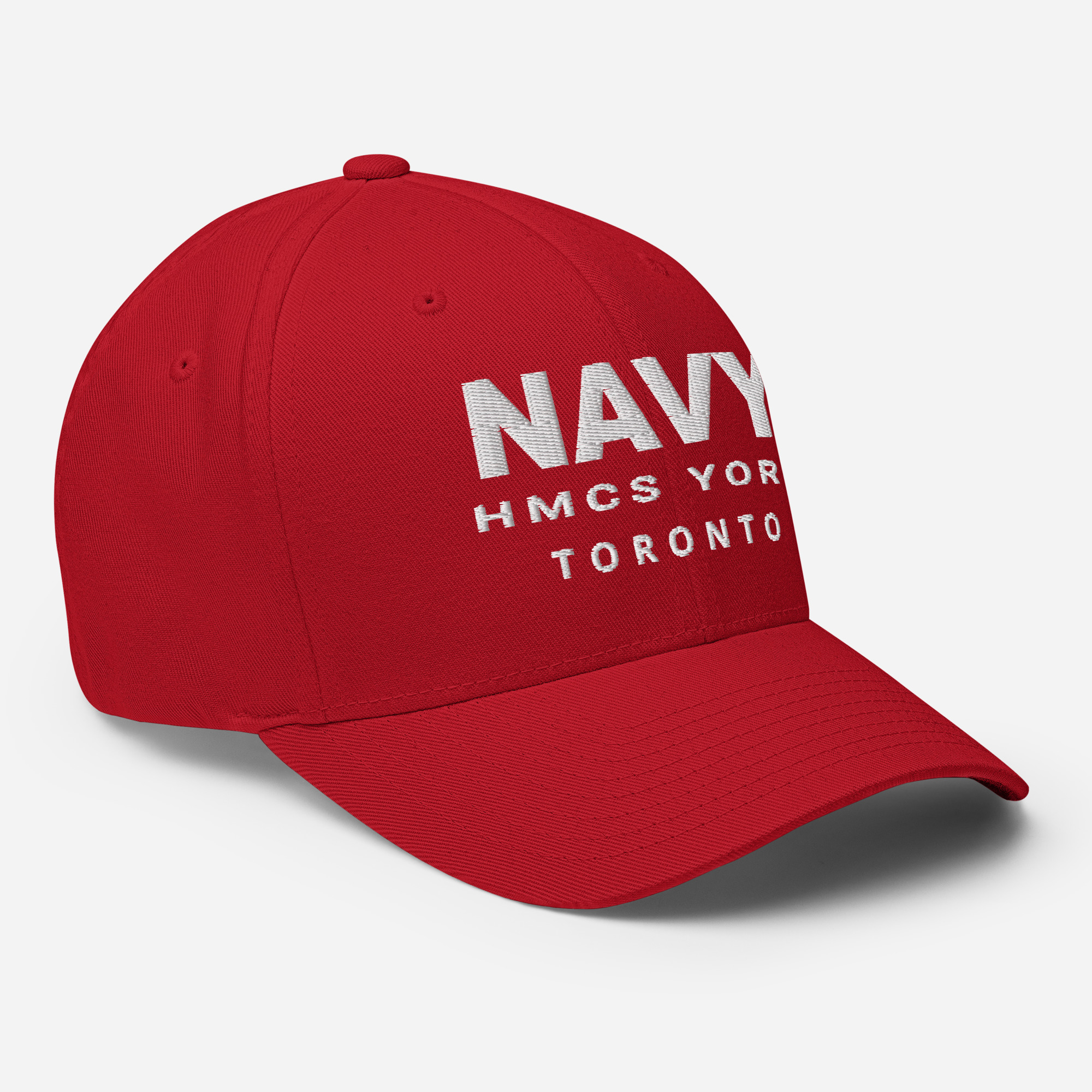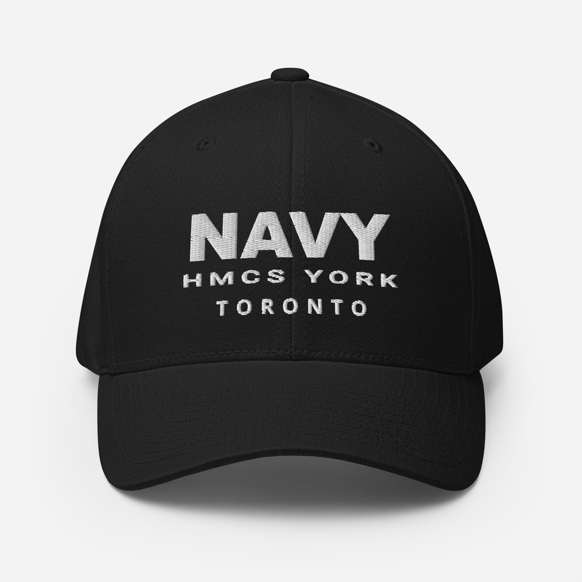 Embroidered text on front and back of cap.