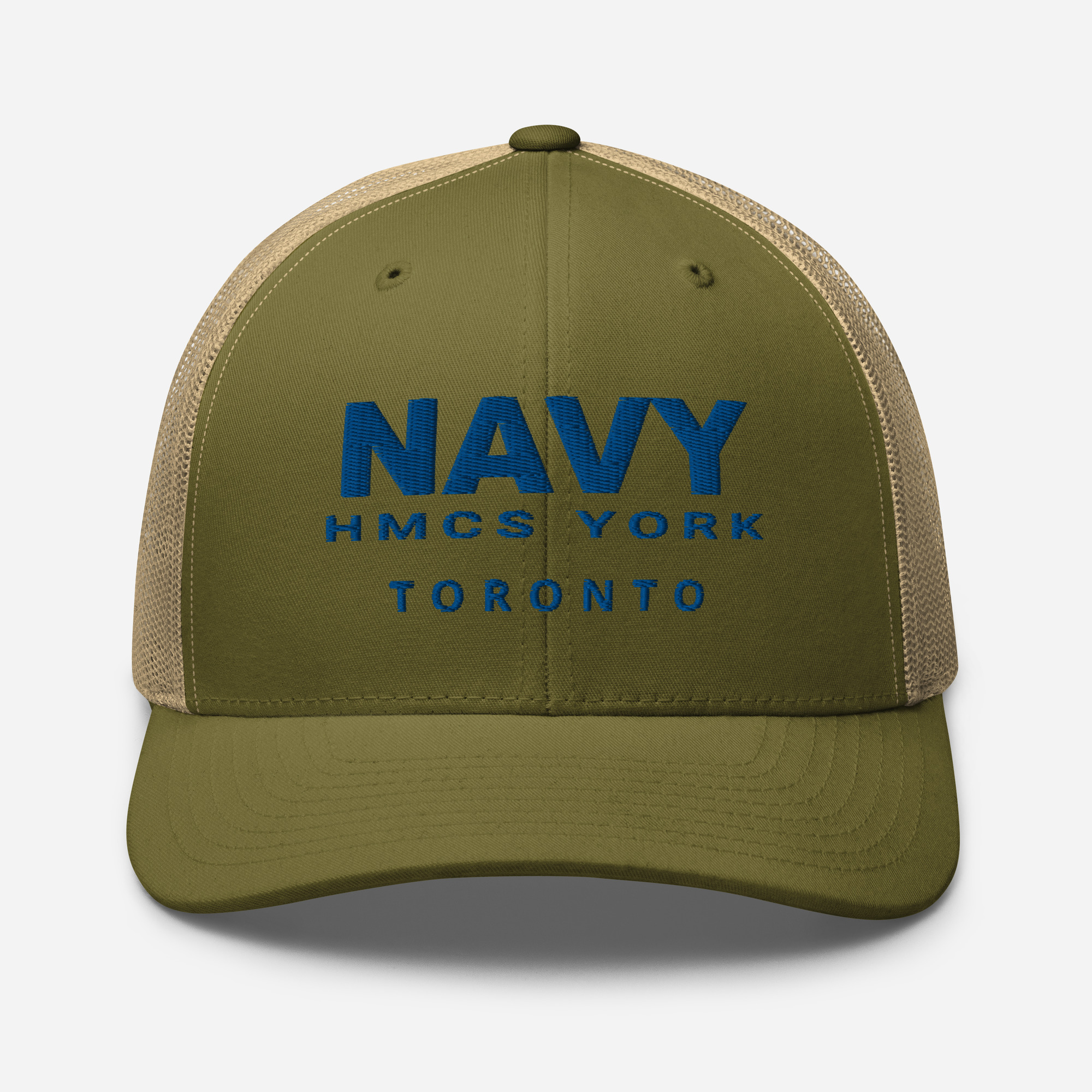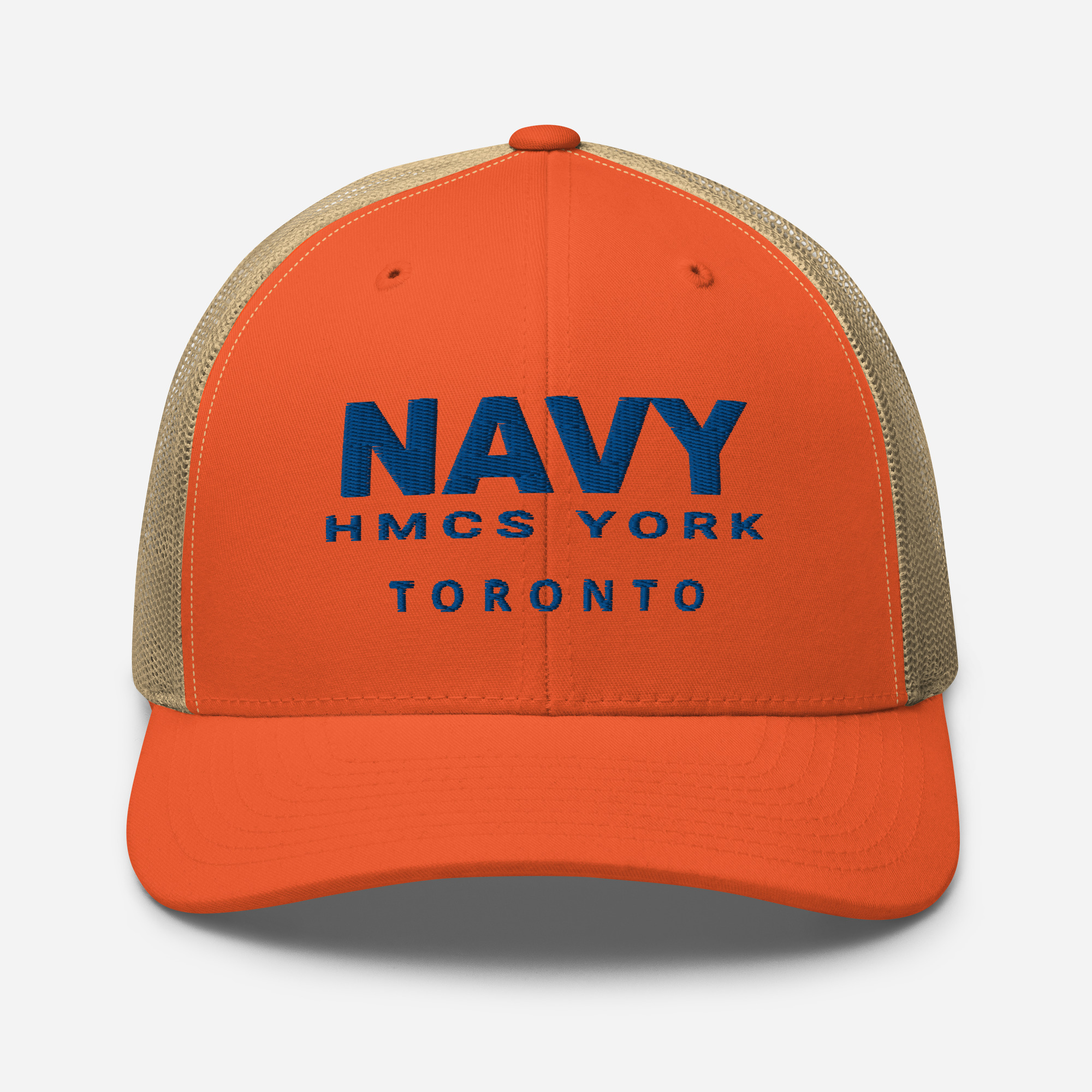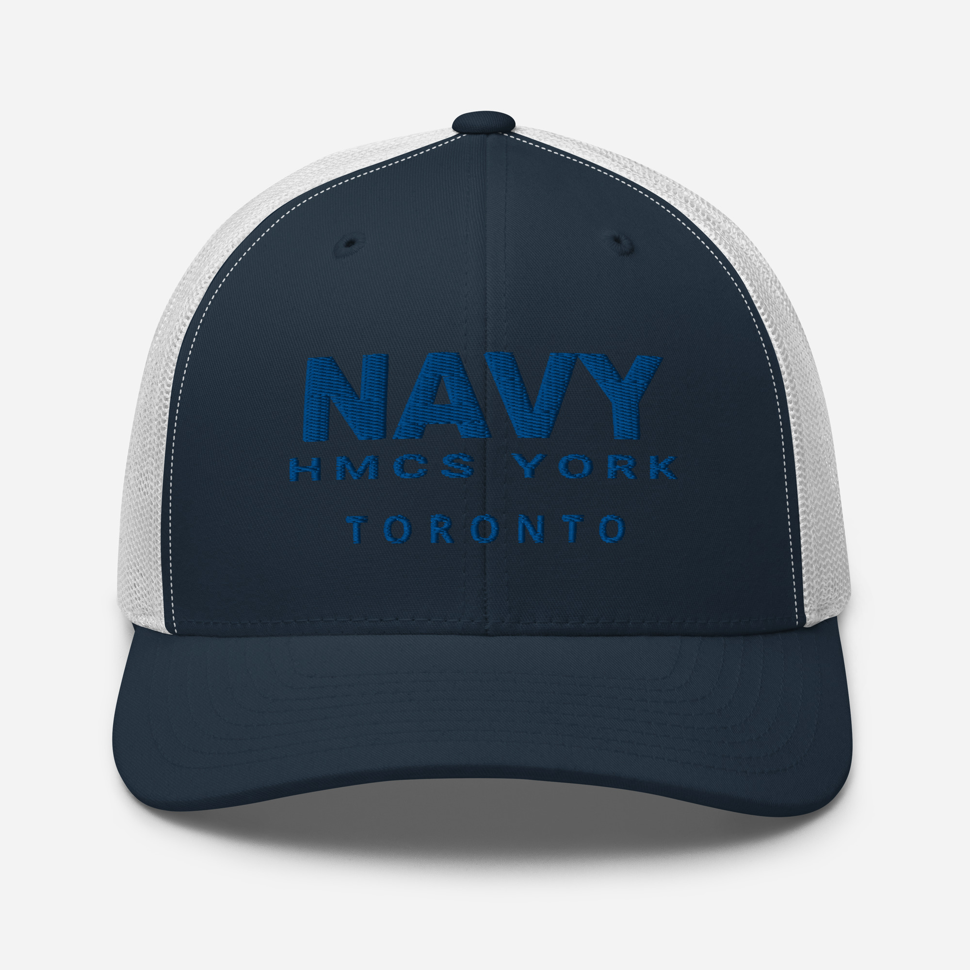 Embroidered text on front of cap.