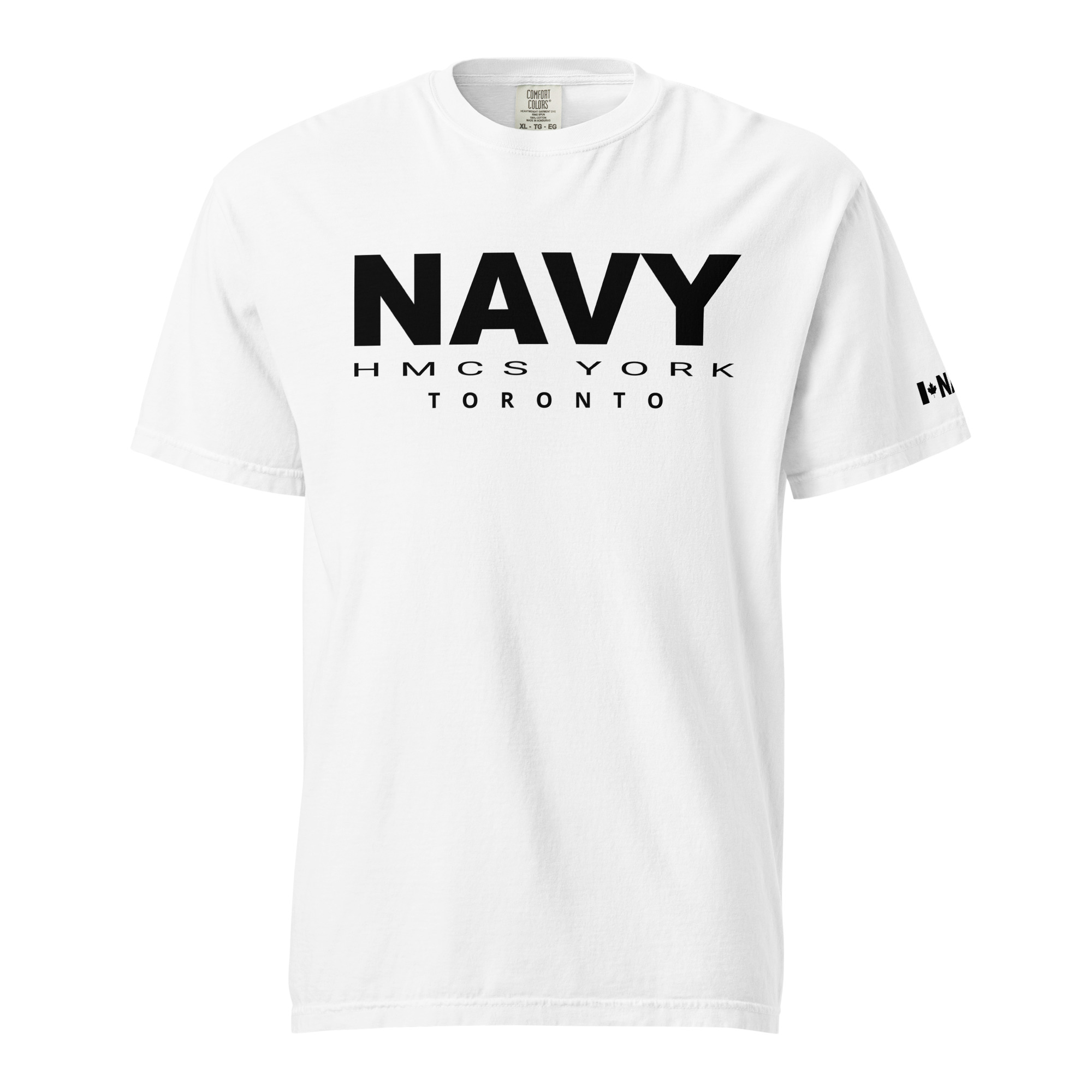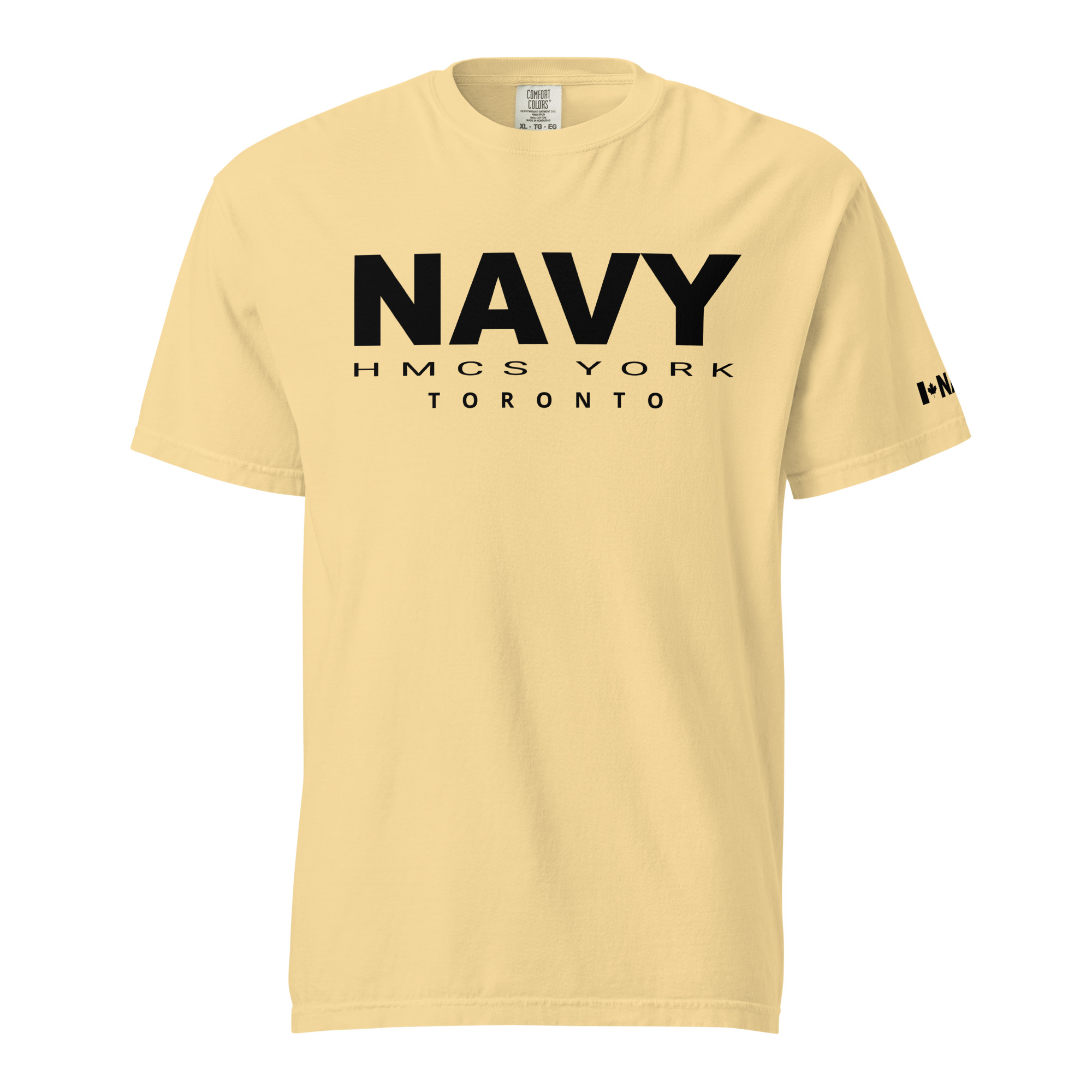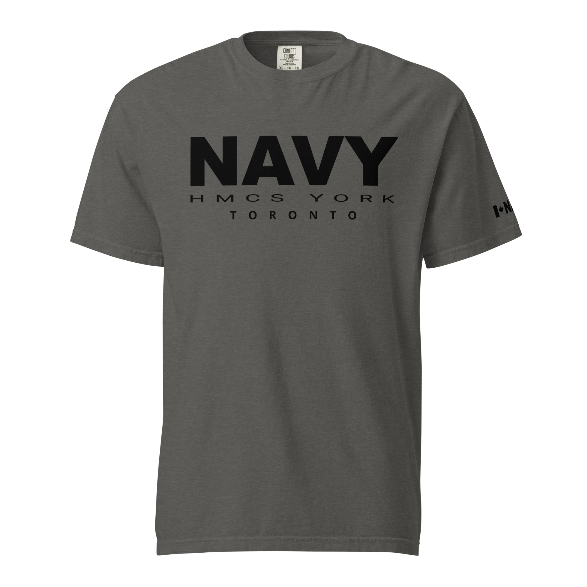 NAVY HMCS YORK Unisex garment-dyed heavyweight t-shirt (Black Text)