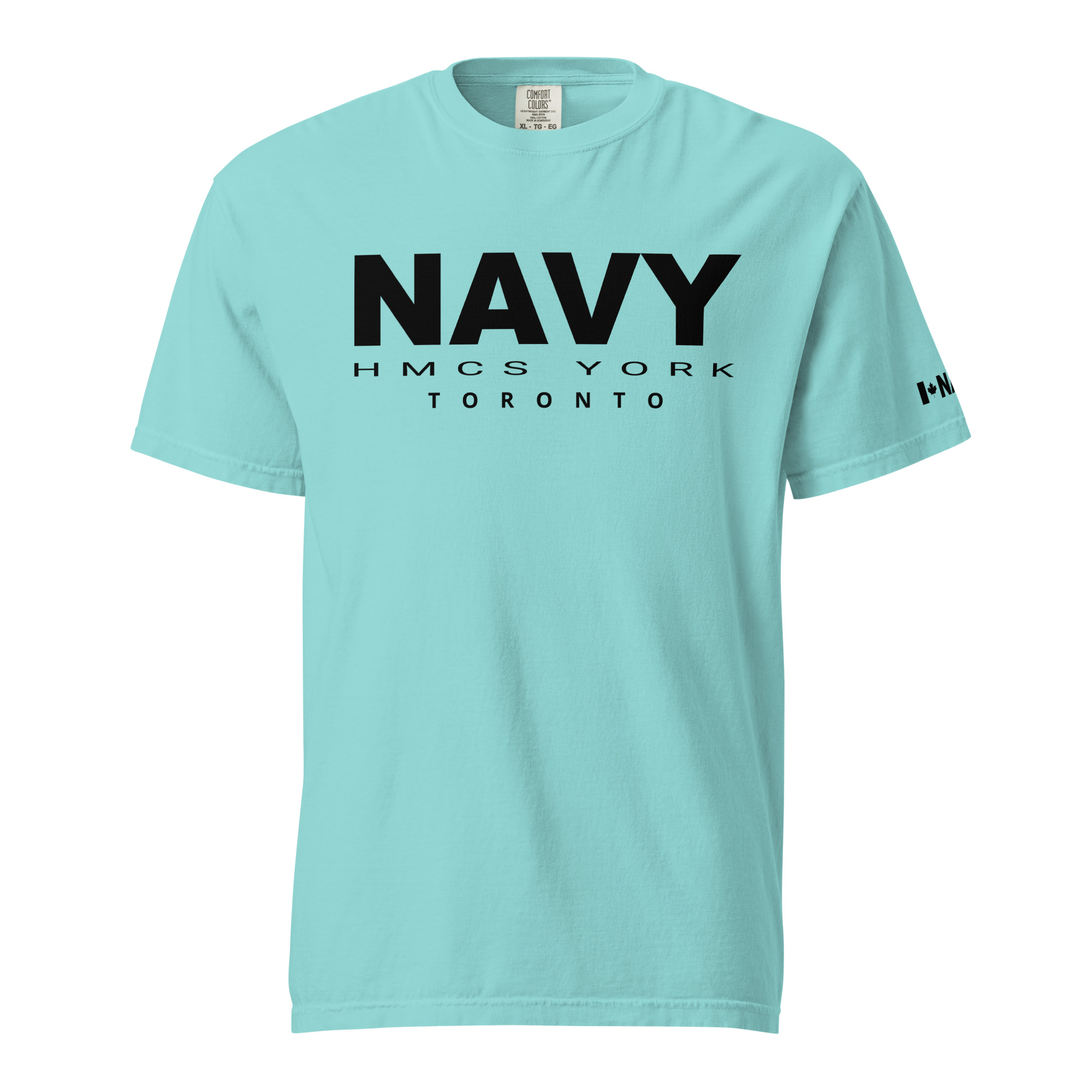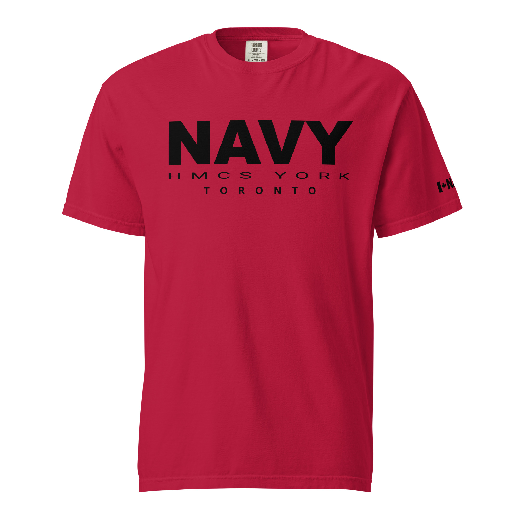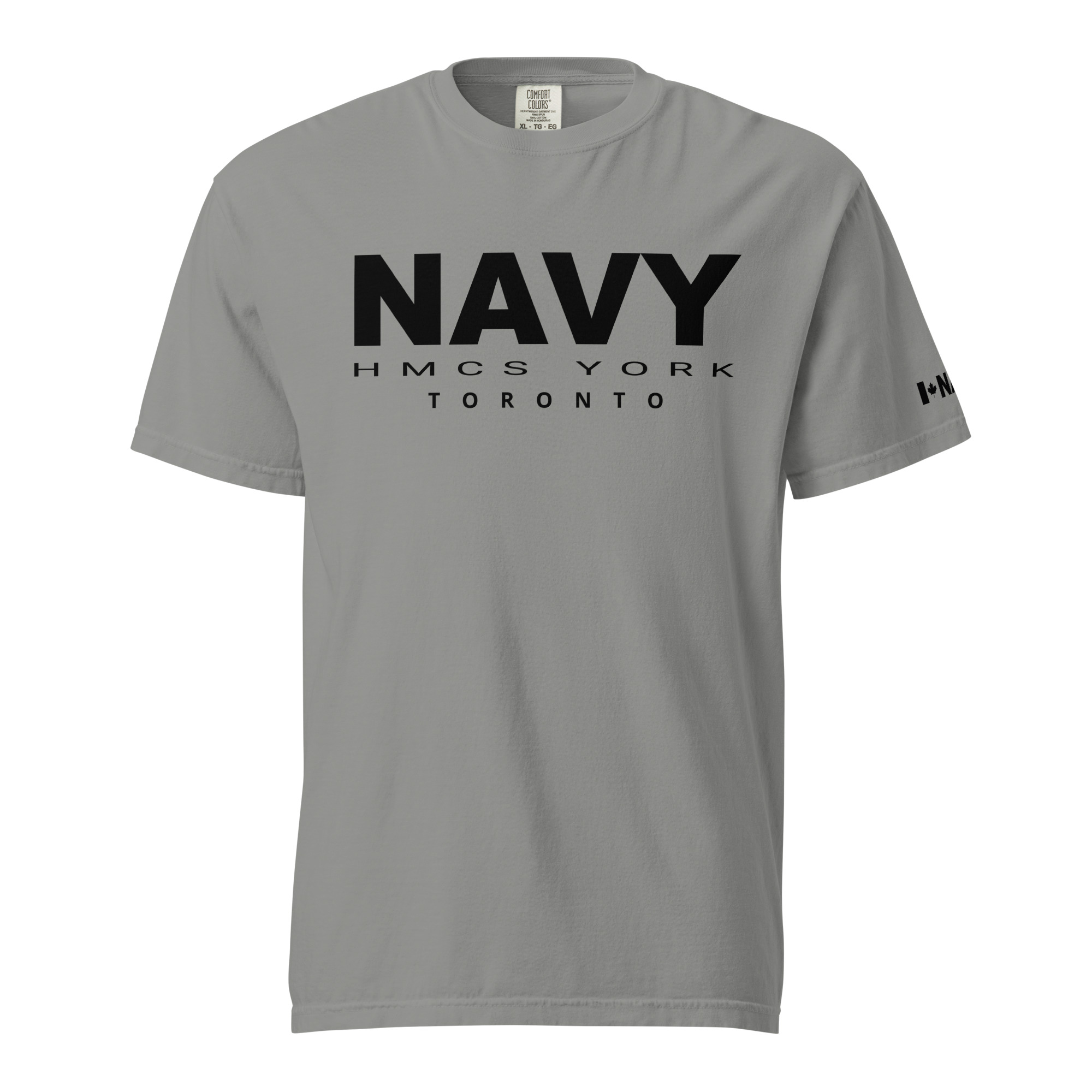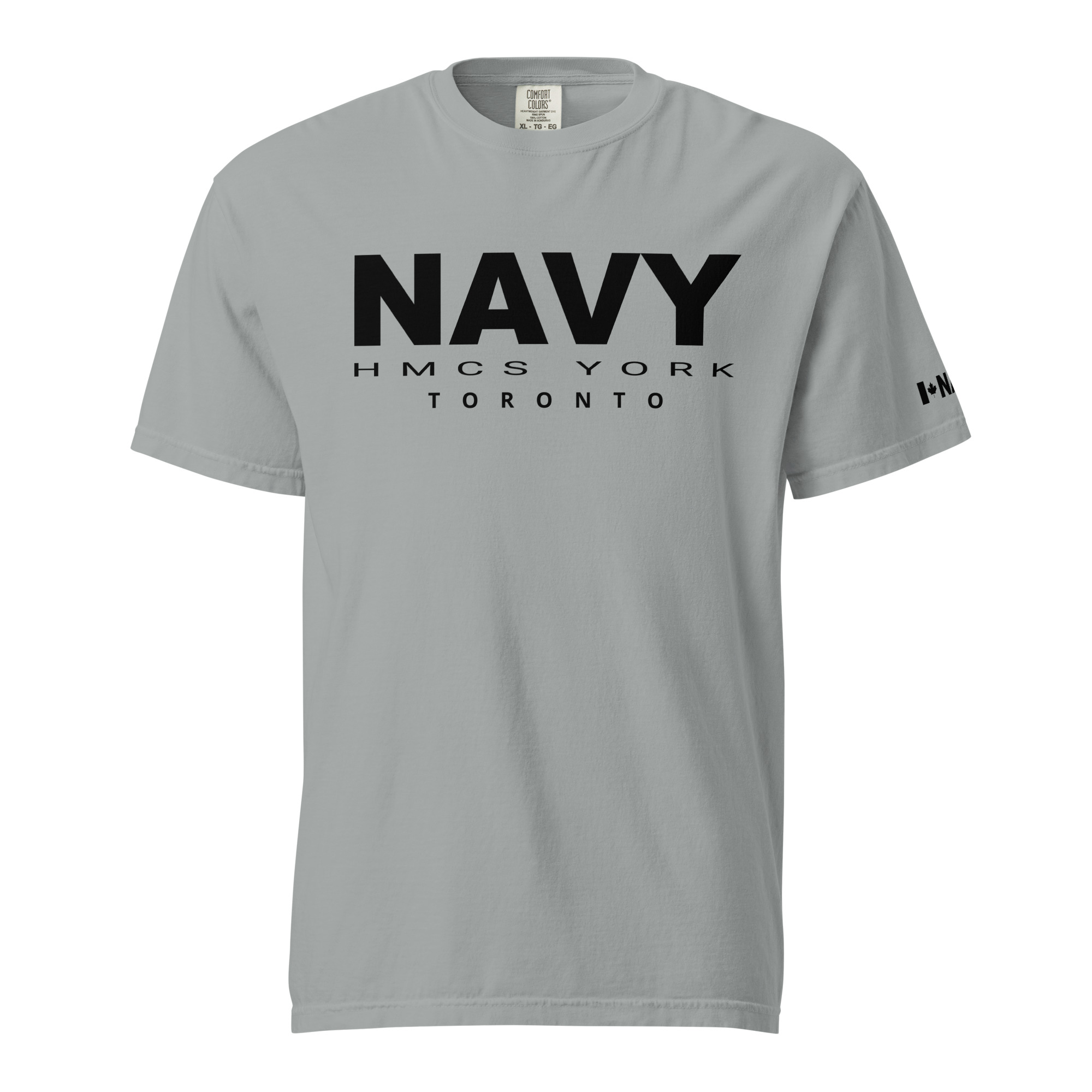 NAVY HMCS YORK Unisex garment-dyed heavyweight t-shirt (Black Text)