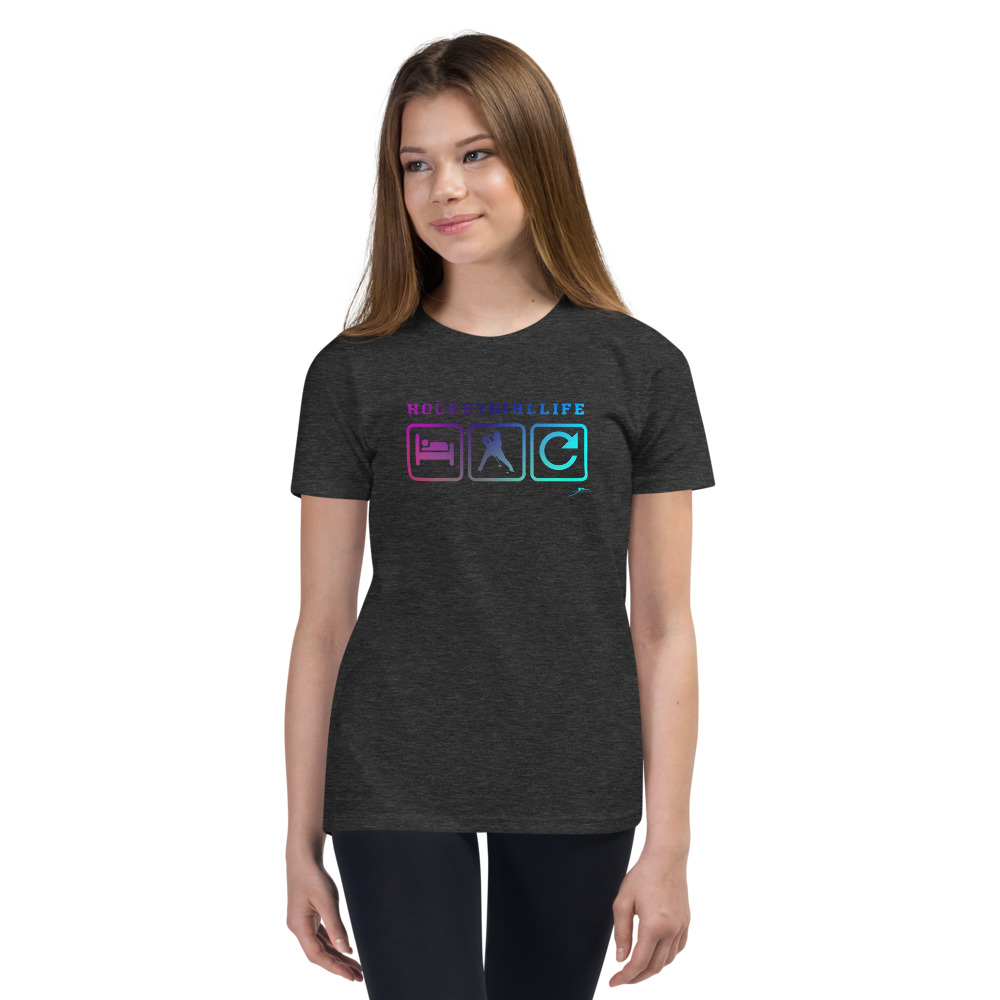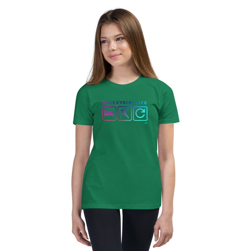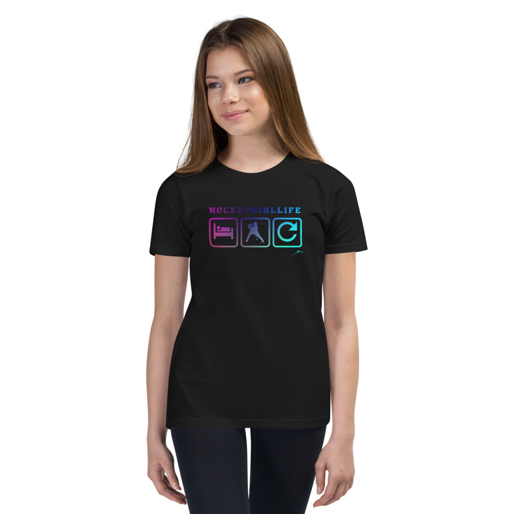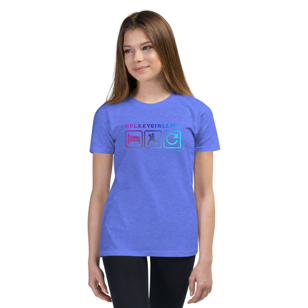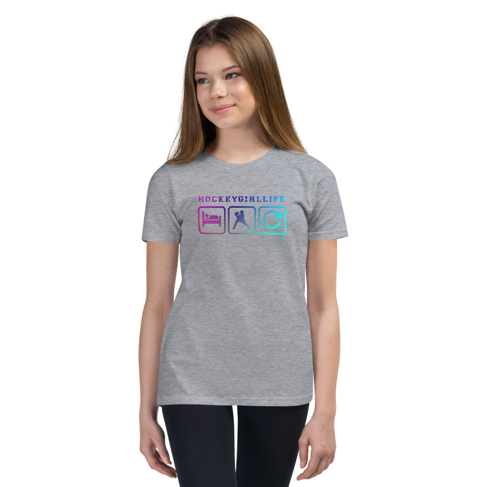 I designed this shirt, and the others in the HKY GRL series, as a way to show support, love and encouragement not only to my two little beauties, but to all girls everywhere who choose to play hockey against all the odds and still let their fun spirit shine.